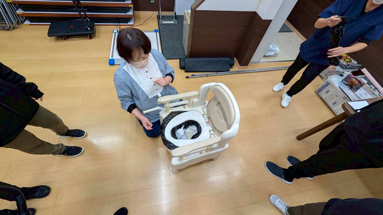 他に簡易式トイレの作り方や実際に使用する事を想定してどの様に使い、どれくらいの物品が必要になるか?みんなで意見交換もありました。