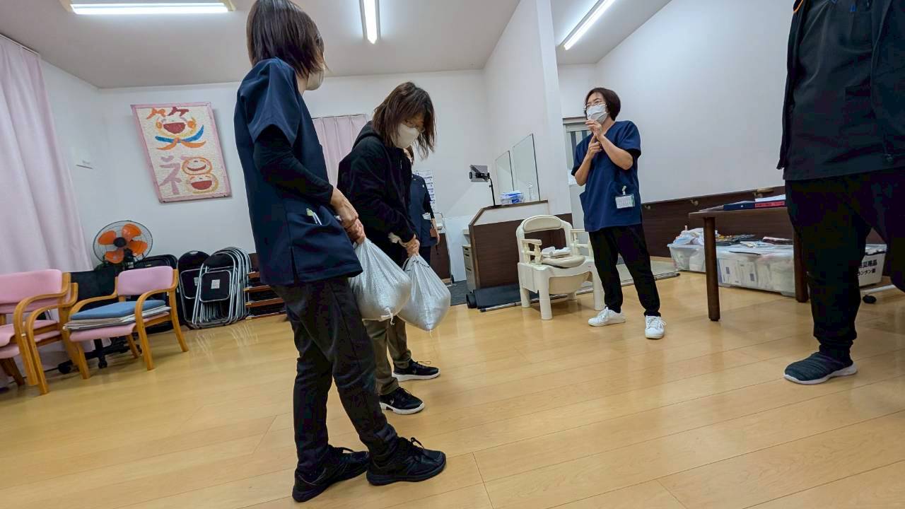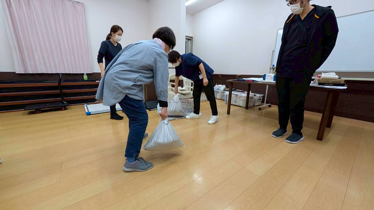 土嚢の置き方や重さを実際確認し(重かったです 笑)